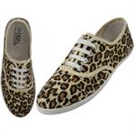 Women's "Easy USA" Canvas Gold Leopard Printed Lace Up Shoes (Gold Leopard Printed)